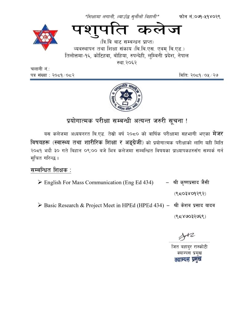 प्रयोगात्मक परीक्षा सम्बन्धी सूचना !