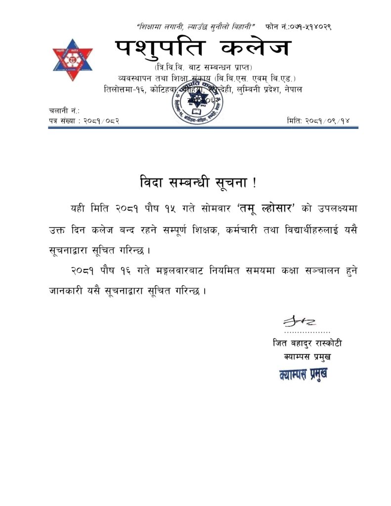 • Campus Road, Tilottama- 16, Kotihawa, Rupandehi, Nepal